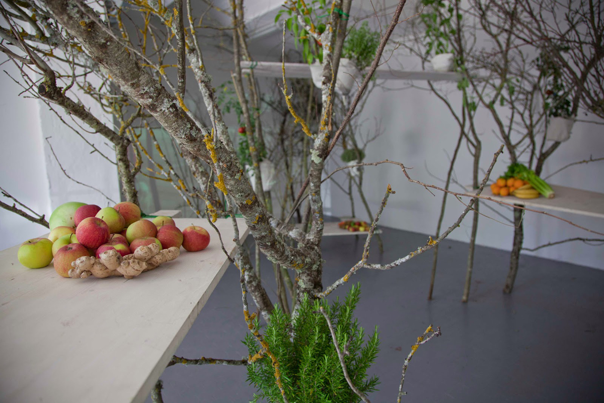 The structure of the installation created an environment redolent of nature, yet artificial, seemingly spontaneous yet intentional, evocative of adventure but functional, inviting one to explore, while being comfortable and enjoyable. It did not appear to have been designed by anyone, while it was in fact the fruit of a precise project, based on the one hand on a rich and multifaceted conceptual plan. On the other hand the planning was organised with precision, using two principal elements: vertical branches and horizontal planks.