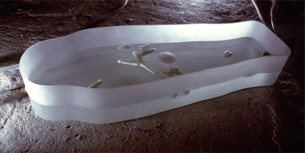 Plexiglass, wax, electric pump, pipes, timers (171x60x40cm).